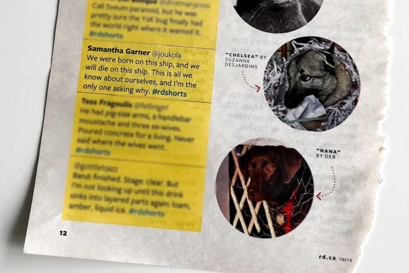 Oh, and in 2012, a tweet of mine ended up in Reader’s Digest (which went on to form the foundation of my fantasy novel Twist the Branch). It made my mother very proud: